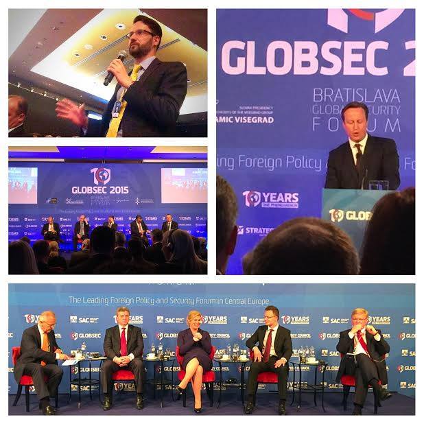 From 19-21 May, Analytica’s Security Research Fellow Andreja Bogdanovski participated at the 10th GLOBSEC Security Conference in Bratislava, Slovakia. GLOBSEC represents one of the biggest and most important security related conferences in Europe. This year it managed to gather great number of heads of states, ministers and security experts including UK’s Primer Minister David Cameron, US Senator John McCain, Carl Bildt, V4 Prime Ministers etc.