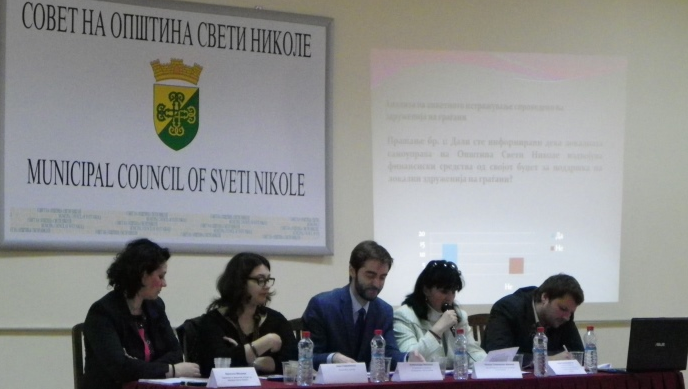 Ana Stojilovska has presented the findings of the paper titled “Risks of corruption in public private partnership in Macedonia” prepared as part of the project “Research on corruption in public-private partnership at local level” on 15 April 2015 in the municipality of Sveti Nikole at the Public debate about distribution of funds from municipal budgets organized by the CSOs Watchdog Network to Prevent Spoils and Conflict of Interest in the Public Administration. She stressed that the research has shown that the law-prescribed procedure for public private partnership reduces the risk of corruption and corruption may happen outside this procedure.