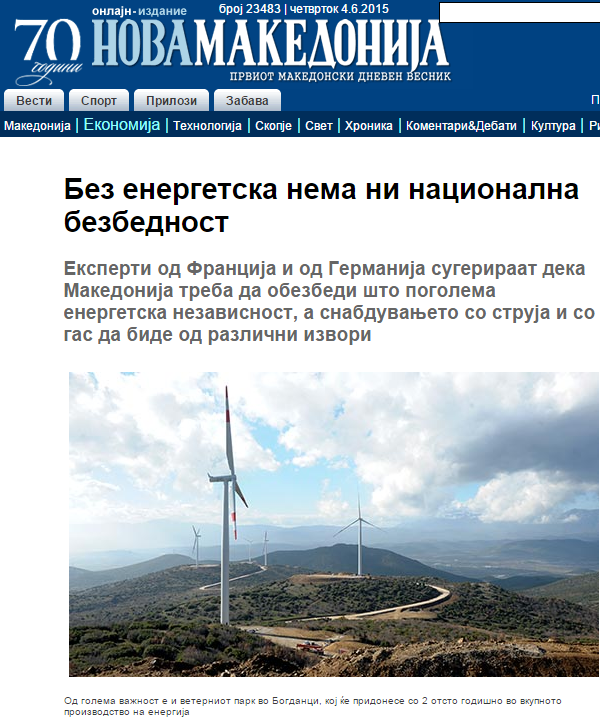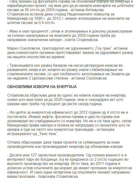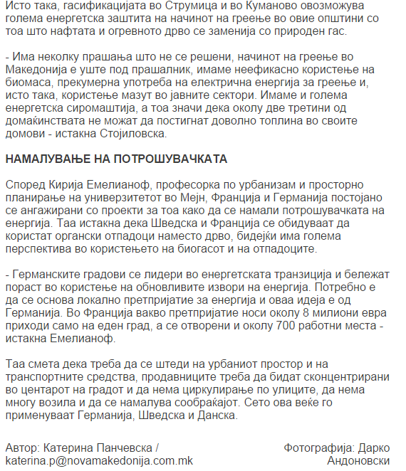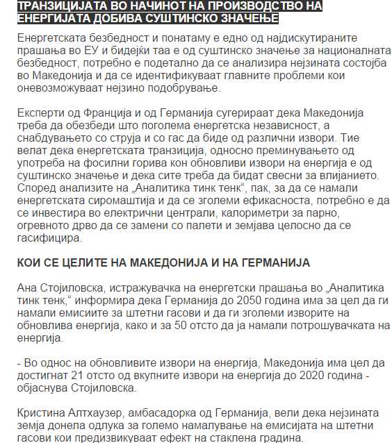Coverage of Ana Stojilovska’s presentation at the seminar “Energy transition and its impact in Macedonia” on 27. May 2015 in Skopje