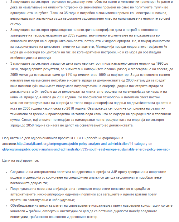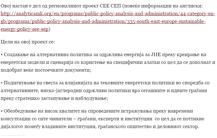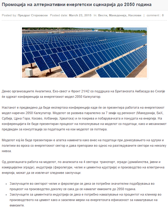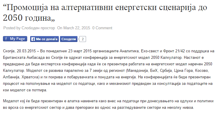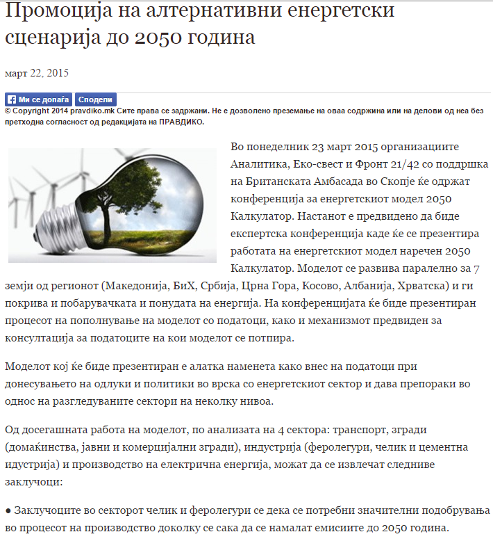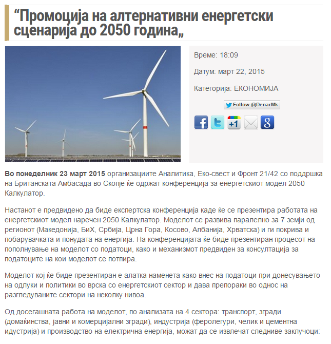 Coverage of Call for evidence for South East Europe 2050 Energy Model for Macedonia on 23 March 2015