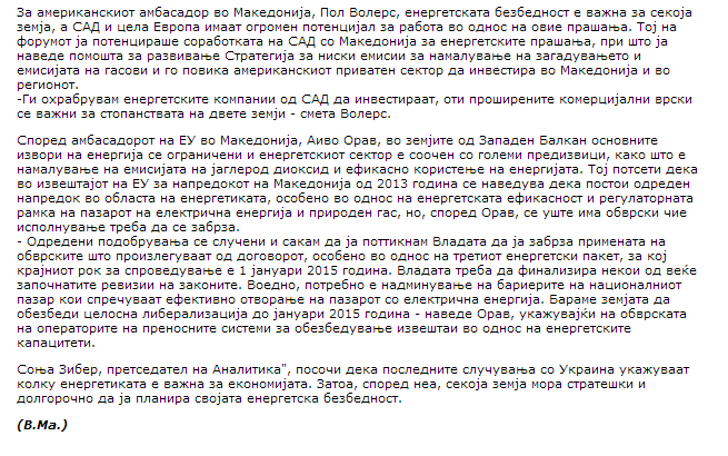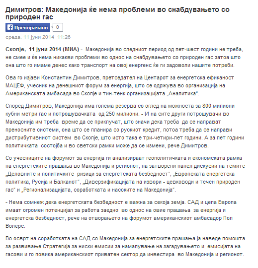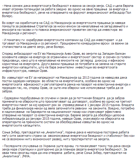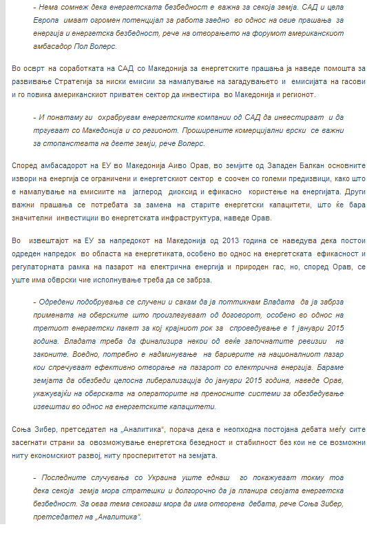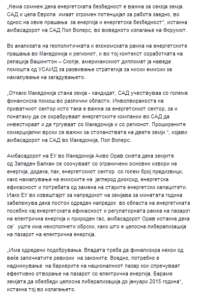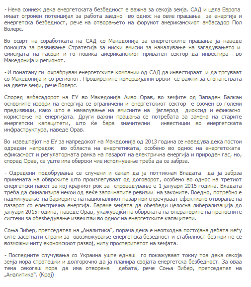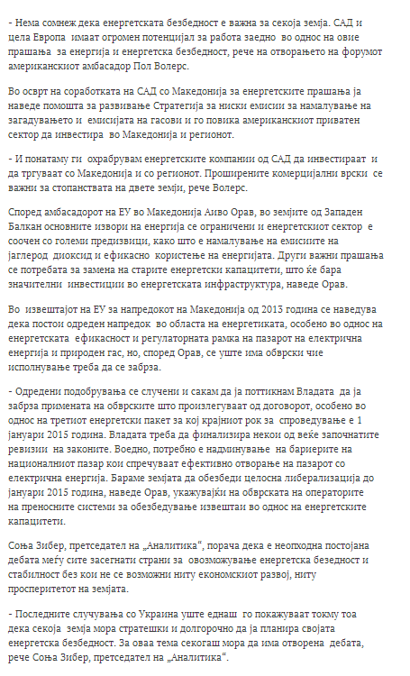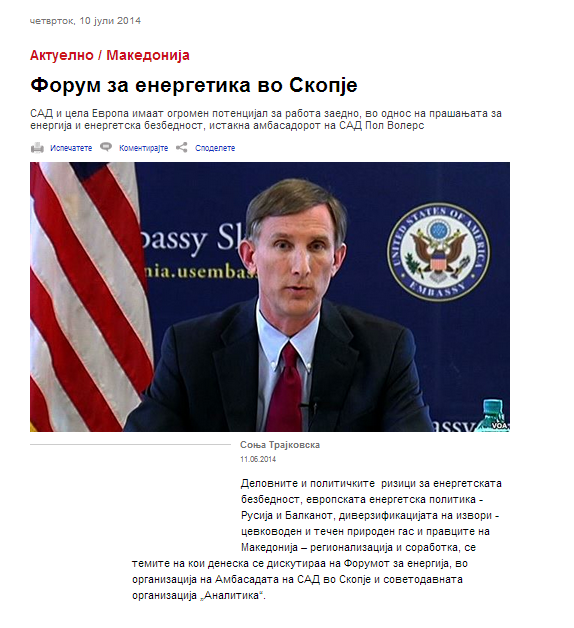 Energy forum 2014 by US Embassy Skopje and Analytica, 11 June 2014, Skopje, Macedonia